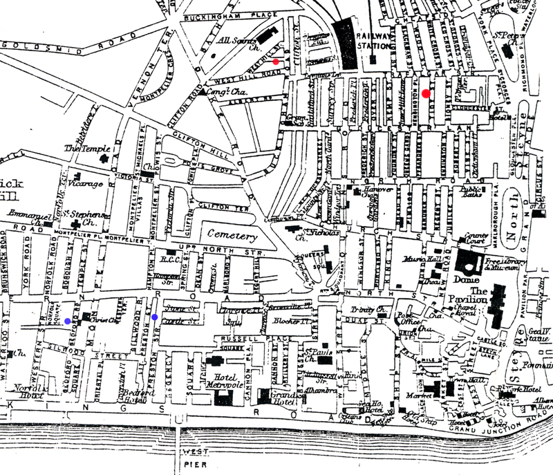Two Victorian Maps of Brighton showing the Location of the Photographic Studios operated by William Prudden |