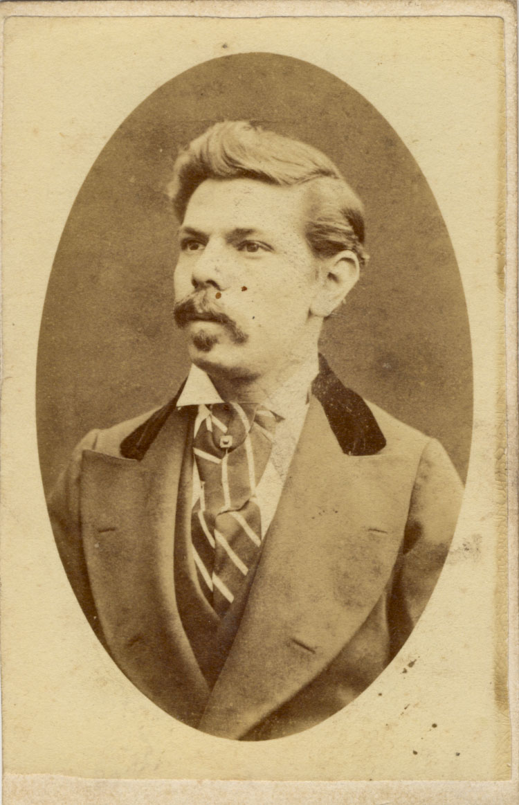 [ABOVE] Portrait of a man in an oval frame, a carte-de-visite portrait produced by William Prudden of 19 Tidy Street, Brighton (c1875). |