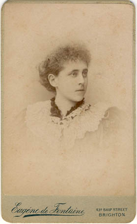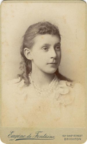 [ABOVE] A carte-de-visite portrait of a young man photographed at the studio of Eugene de Fontaine at 43A Ship Street, Brighton. The sitter is recorded as "Green". | [ABOVE] A carte-de-visite portrait of a an unknown girl photographed at the studio of Eugene de Fontaine at 43A Ship Street, Brighton (c1895). | [ABOVE] A carte-de-visite portrait of a young woman photographed at the studio of Eugene de Fontaine at 43A Ship Street, Brighton (c1894). Negative No. 1047. |