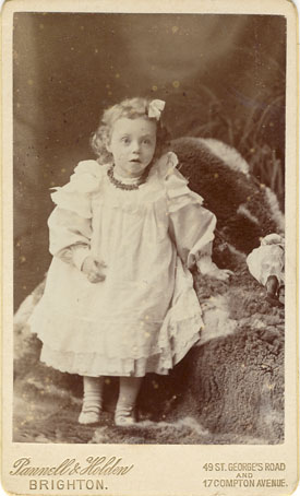| [ABOVE] Carte-de-visite portrait of an unknown woman by Pannell & Holden, 49 St George's Road and 17 Compton Avenue, Brighton. (c1902). | [ABOVE] Carte-de-visite portrait of a young girl by Pannell & Holden, 49 St George's Road and 17 Compton Avenue, Brighton. (c1902). | [ABOVE] Carte-de-visite group portrait of five siblings by Pannell & Holden, 49 St George's Road and 17 Compton Avenue, Brighton. (c1902). |