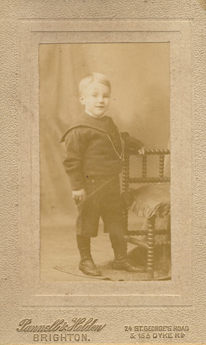 Frederick James Holden was born at Pulborough, Sussex, in January 1873, the son of Harriet and Frederick Holden, a railway signalman. During the early 1890s, when he was just a teenager, Frederick James Holden was employed as a photographer’s assistant in one of Ebenezer Pannell’s studios. The 1891 census records Frederick Holden as an 18 year old "Photographer" at 28 Sudeley Place, Brighton, one of the two studios operated by Ebenezer Pannell and his sister Frances Pannell. At the time of the 1891 census, Ebenezer Pannell was residing with his wife and children at 49 St George's Road, Brighton and eighteen year old Frederick Holden was lodging with Miss Fanny Pannell at 28 Sudeley Place, Brighton. By 1895, Frederick James Holden had established his own photographic studio, first at 6 Bank Buildings, Burgess Hill and then at 2 Southdown Villas, opposite the church in Church Road, Burgess Hill. During the First Quarter of 1896, Frederick Holden married Martha Harriet Grover (born 1871, Brighton), the daughter of Mary and Charles Grover, who worked as a saddler in Brighton. Frederick and Martha's only child, a boy named Frederick Donovan Holden, was born in Brighton or Hove in 1905. [The birth of Frederick Donovan Holden was registered in the Sussex district of Steyning during the 4th Quarter of 1905. At this time, Hove was included in the Steyning registration district]. In 1900, after four years as a photographer in Burgess Hill, Frederick Holden was invited to join his former employer in a business partnership, to trade under the name of Pannell & Holden. The partnership between Frederick Holden and Ebenezer Pannell was dissolved in July 1905. Pannell & Holden's former studio at 16a Dyke Road, Brighton passed to Frederick Holden, but after a year or so, Holden sold the studio to Mrs Ada Schofield (born 1859, Cheltenham) and returned to Burgess Hill. Between 1907 and 1909, Frederick James Holden operated a photographic portrait studio in Church Road, Burgess Hill. After a couple of years, Frederick Holden and his family left Burgess Hill to set up a new photographic studio in Reigate, Surrey. When the census was taken on 2nd April 1911, Frederick James Holden was living with his wife and five year old son at 13 St Mary's Road, Reigate, Surrey. On the census return, Frederick James Holden is described as a thirty-eight year old "Photographer". To make ends meet, Frederick and Martha Holden had taken in a trio of lodgers, all three of them young bakery workers - Adeline Spicer, a twenty-one year old baker's assistant from Deal in Kent, Percy Bate, a teenage baker baker from Holmwood in Surrey and fifteen year old Albert Hasbird, a "pastry cook apprentice" from Windsor. The 1913 edition of Kelly's Directory of Sussex lists Frederick J. Holden as a photographer at 34 High Street, Reigate, Surrey. Frederick James Holden died in Dorking, Surrey, in 1929, at the age of 56. The following year, Frederick Donovan Holden, married Winifred M. Bailey in Dorking. Mrs Martha Harriet Holden, Frederick's widow, died in Brighton in 1944, aged 72. |