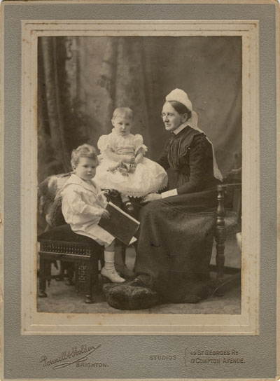 [ABOVE] A large format photograph of a woman and two young children produced by Pannell & Holden, 49 St George's Road and 17 Compton Avenue, Brighton. (c1901)