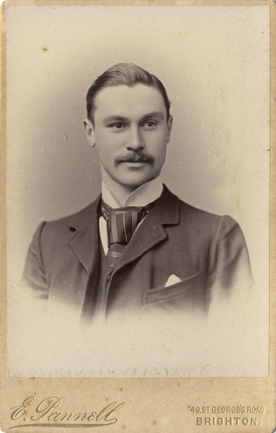 [ABOVE ] Portrait of the Brighton photographer Ebenezer Pannell (born 1860) taken at Pannell's photographic portrait studio at 49 St George's Road, Brighton around 1897. [PHOTO : Courtesy of Peter Cannings-Bushell and Erryn Pannell] |