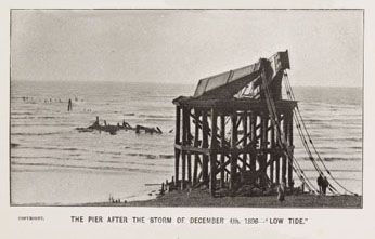 [ABOVE] "The Pier after the Storm of December 4th, 1896 - Low Tide" a photograph by Ebenezer Pannell which was used to illustrate the book The Brighton Chain Pier by John George Bishop (1897). |