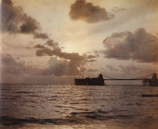 [ABOVE] Seascape with Brighton's Chain Pier, a large, hand-tinted photographic print produced around 1895 by Ebenezer Pannell of 49 St George's Road, Brighton. Ebenezer Pannell made a number of photographs of Brighton's Chain Pier during the 1890s. [PHOTO: Courtesy of Philippe Garner]