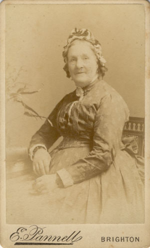 | [ABOVE] Carte-de-visite portrait of a young woman by Ebenezer Pannell, 21 Canning Street, Brighton. Printed on the reverse is a trade plate which reads "E. Pannell, Photographic Artist, 28 Sudeley Place, Brighton". (c1886) | [ABOVE] Carte-de-visite portrait of an elderly man by Ebenezer Pannell, 21 Canning Street, Brighton. Printed on the reverse of the carte is the date "Nov. 19th 1883". | [ABOVE] Carte-de-visite portrait of an elderly woman by Ebenezer Pannell, Photographic Artist, 28 Sudeley Place, Brighton. (c1888) |