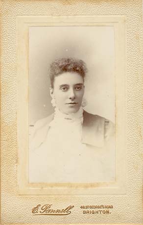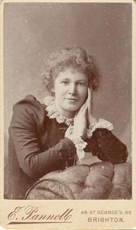 1888 and 1890. The 1890 edition of Kelly’s Directory of Sussex records Ebenezer Pannell as a "photographic artist" at 49 St George’s Road, Kemp Town, and as an "artist" at 28 Sudeley Place, Kemp Town. The 1891 census return details how Pannell’s business operations were divided between Sudeley Place and St George’s Road. Ebenezer’s sister Frances Pannell, described as a "Photographic Artist", aged 40, is shown residing at 27 Sudeley Place with her parents. Ebenezer’s father, sixty-seven year old William Pannell is entered on the census return as a “Waiter at an Inn”. Mrs Rachel Pannell, William Pannell’s wife, is recorded on the census return as "blind since 1888". Mrs Rachel Pannell died in 1897 at the age of 74. William Pannell continued to work as a waiter well into old age. (The 1901 census records William Pannell as a seventy-eight year old "hotel waiter". William Pannell died in 1909 at the age of eighty-five). At the time of the 1891 census, Ebenezer Pannell was residing at 9 St George’s Road, Kemp Town, Brighton, with his thirty-eight year old wife Mary Ann Pannell and their two children, four year old Ebenezer junior and two year old Ella. On the census return Ebenezer Pannell is recorded as a "Photographic Artist", aged 30.