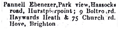 | Ebenezer William PANNELL | 53 Church Road, Burgess Hill |