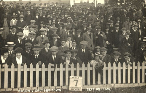 ![]() [ABOVE] A section of the home crowd at the game between Brighton & Hove Albion Football Club and Grimsby Town F.C. on 29th September 1920, photographed at the Goldstone Ground by George A. Wiles of Brighton. Grimsby Town F. C. won the game 3-1
