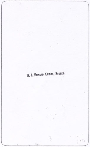 Henry Howard, George's father, had married Eliza Wilson in the district of Stockton in 1856. The couple produced at least 9 children - Mary Ann Howard (born 1858, Hartlepool, Co. Durham), Alfred Howard (born 1860, Great Ayton, Yorkshire), William Henry Howard (born 1862, Middlesbrough), George Arthur Howard (born 1864, Great Ayton, Yorkshire), Anna Louisa Howard (born 1867, Middlesbrough), Catherine Emily Howard (born c1871, Yorkshire), Edwin Howard (born c1874, Yorkshire), Lily Howard (born 1876, Ormesby, Yorkshire) and Edith Howard (born 1879, Ormesby, Yorkshire). After leaving school, George Arthur Howard entered domestic service. At the time of the 1881 census, sixteen year old George Howard was working as a "Footboy (Domestic)" at Ormesby Hall in Ormesby, near Middlesbrough. George Howard was employed by members of the Pennyman Family who had owned Ormesby Hall since the time of Charles II. Sometime in the 1880s, George Arthur Howard moved down to Sussex to work as a domestic servant at Eridge Castle, the country seat of the Earl and Marquess of Abergavenny. The 1891 census records twenty-six year old George Arthur Howard as a "Valet (Domestic)" residing in Eridge Green at The Cottage, the home of George Evan Macbean, the Land Steward to William Neville, the Marquess of Abergavenny. On 21st October 1891, at Holy Trinity Church, Eridge Green, George Arthur Howard married a 27 year old domestic servant named Emily Brooman (born 1864, Eridge, Sussex), the daughter of Thomas Brooman, a gardener and labourer, and his second wife Sarah Nash. By the time of his marriage to Emily Brooman, George Howard was working as a photographer in the Eridge area. A few carte-de-visite portraits dating from around 1890 and bearing the photographer's credit "G. A. Howard, Eridge, Sussex" have survived to the present day. A cabinet card photograph showing a hunting party gathering at Eridge Castle in Eridge Green carries a photographer's trade plate which reads; "GEO. HOWARD, Eridge, Sussex". At the time of the 1891 census, George Arthur Howard was employed as a valet at Eridge Castle and so it is likely that the cabinet photograph dates from this period.