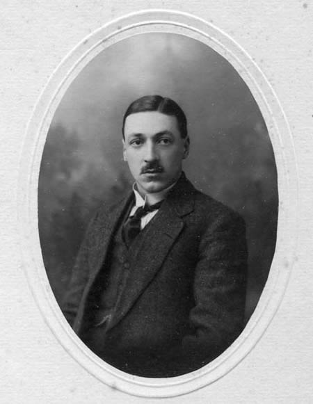 [ABOVE] A studio portrait of John R. D. Mitchell of Jarvis Brook, photographed by A. H. Stickells of Crowborough around 1920. John Richard Daniel Mitchell (born 1891, Rotherfield) was the youngest son of Sophia Hoadley (1865-1927) and John Mitchell (1864-1942), a farmer in Jarvis Brook. Photograph : Courtesy of Trevor Cornford