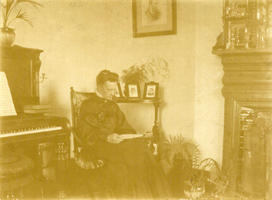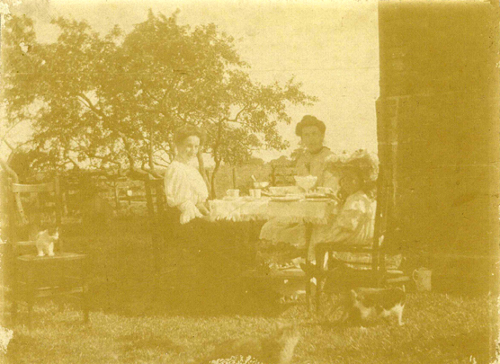 [ABOVE] A portrait of Mrs Sophia Mitchell in her sitting room, photographed by her son John R. D. Mitchell at the family home at Millbrooke Farm, Jarvis Brook, near Crowborough (1907). | [ABOVE] A family group enjoying a a meal in the open air, photographed by John R. D. Mitchell outside the family home at Millbrooke Farm, Jarvis Brook, near Crowborough (c1907). |