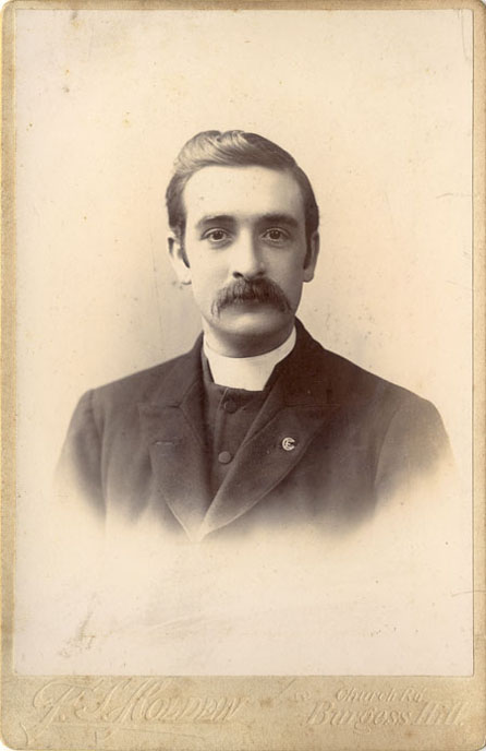 | [ABOVE] A cabinet portrait of an unknown woman by Frederick James Holden of Church Road, Burgess Hill, Sussex (c1900). | [ABOVE] A cabinet portrait of an unknown clergyman by Frederick James Holden of Church Road, Burgess Hill, Sussex (c1900). |