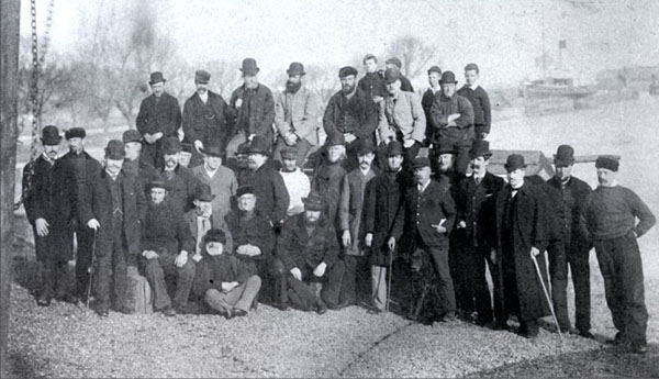 [ABOVE] A group of men photographed by Edwin Whiteman at the Fishmarket, Rye in the late 1890s. The Fishmarket area of Rye was populated by fishermen, ironworkers, sail-makers, shipbuilders and bargemen. |